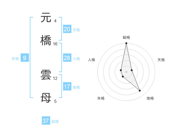 元橋 雲母さんを姓名の画数から五運を鑑定