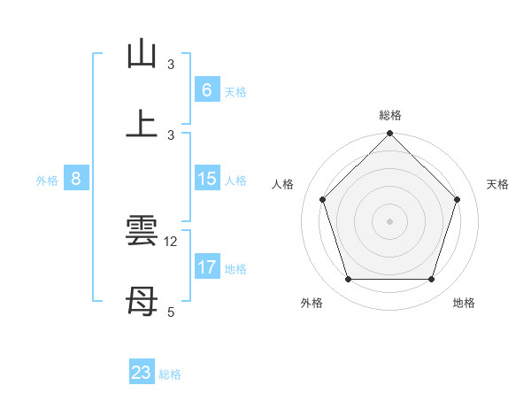 山上 雲母さんの総格は23画の5点!