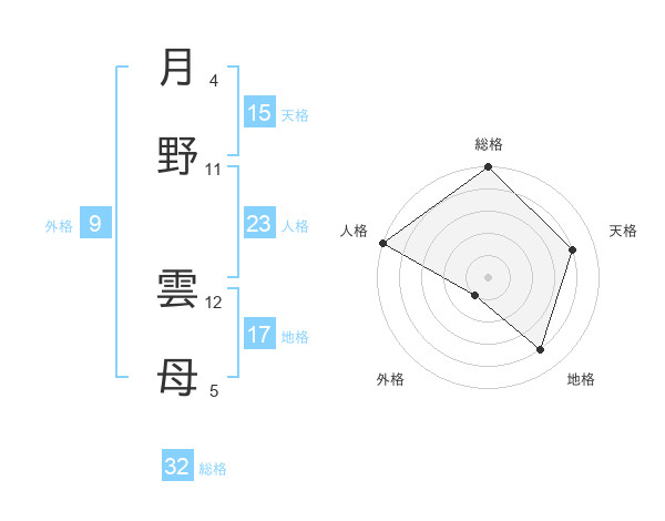 月野 雲母さんの総格は32画の5点!
