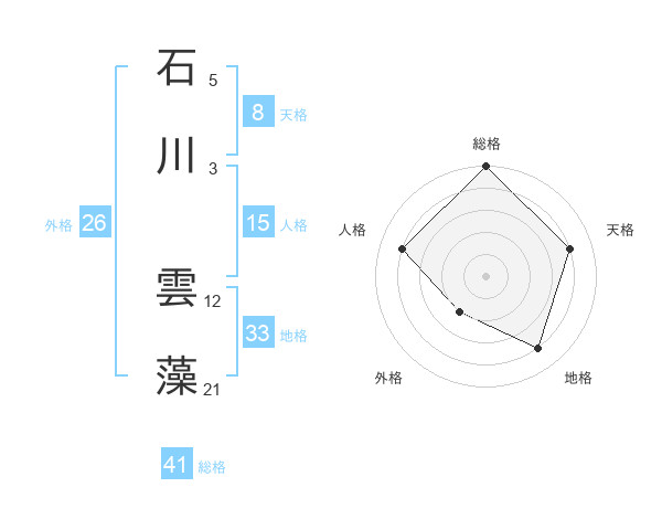 石川 雲藻さんの天格は8画の4点!