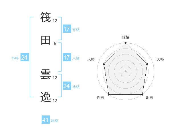 筏田 雲逸さんを姓名の画数から五運を鑑定