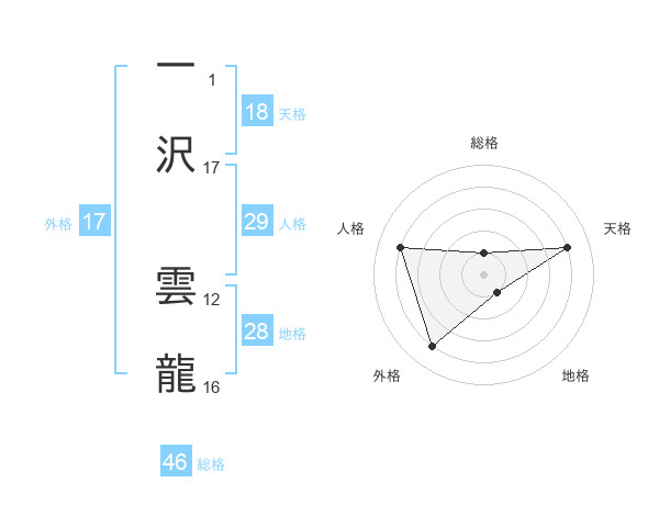 一沢 雲龍さんを姓名の画数から五運を鑑定
