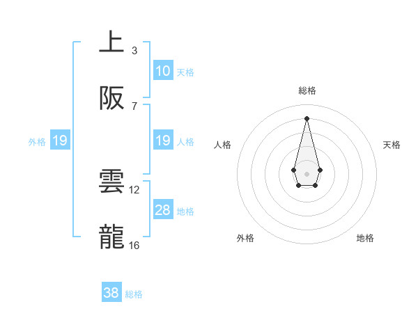 上阪 雲龍さんを姓名の画数から五運を鑑定