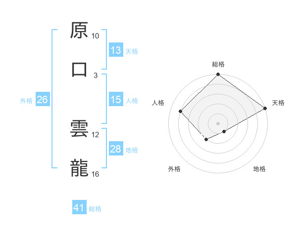 原口 雲龍さんを姓名の画数から五運を鑑定