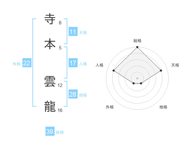 寺本 雲龍さんの総格は39画の5点!
