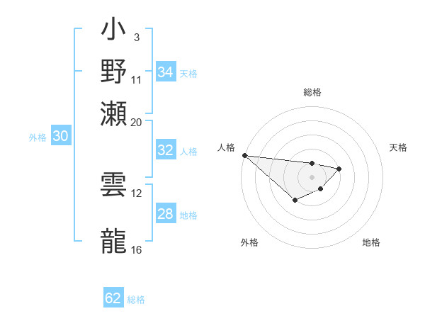 小野瀬 雲龍さんを姓名の画数から五運を鑑定
