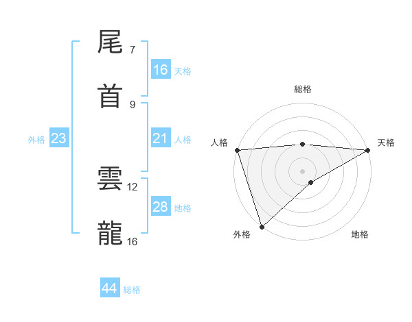 尾首 雲龍さんを姓名の画数から五運を鑑定