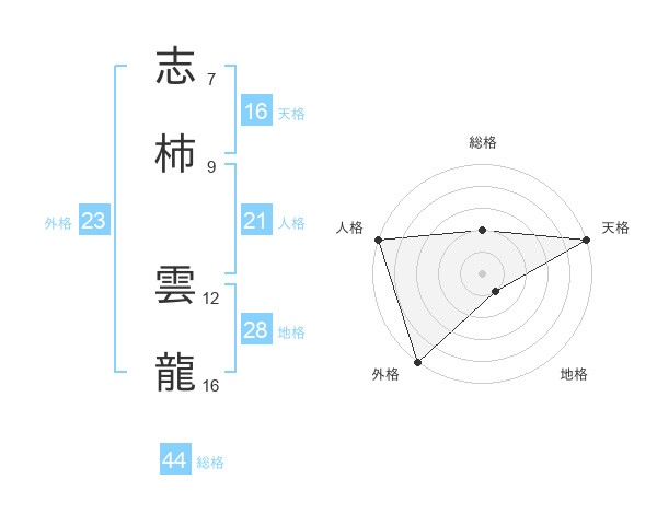 志柿 雲龍さんを姓名の画数から五運を鑑定