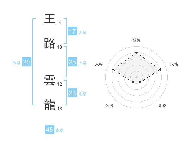 王路 雲龍さんを姓名の画数から五運を鑑定