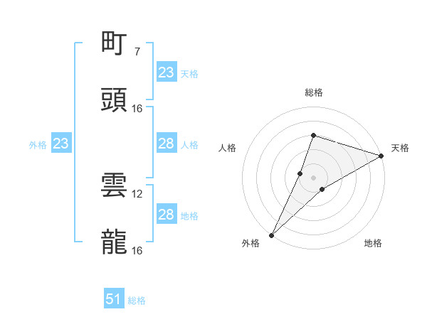 町頭 雲龍さんを姓名の画数から五運を鑑定