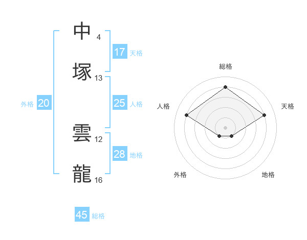 中塚 雲龍さんを姓名の画数から五運を鑑定