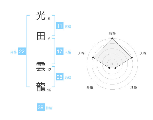 光田 雲龍さんを姓名の画数から五運を鑑定