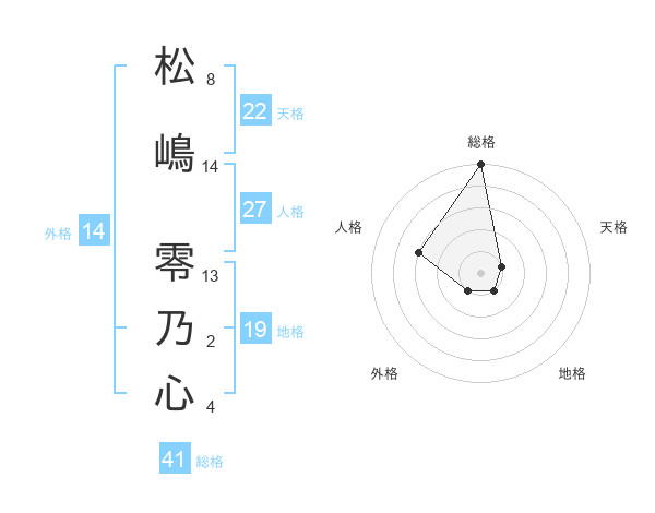 松嶋 零乃心さんの総格は41画の5点!