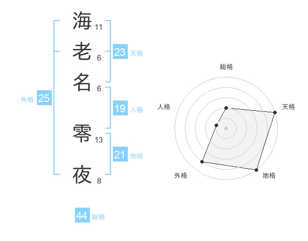 海老名 零夜さんを姓名の画数から五運を鑑定