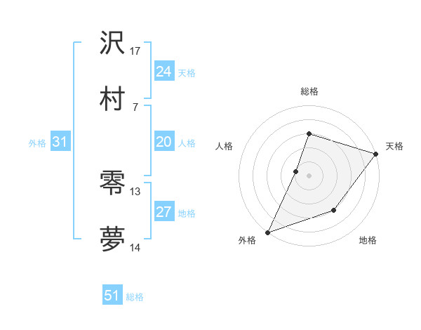 沢村 零夢さんの総格は51画の3点