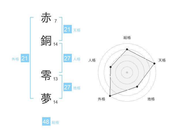赤銅 零夢さんを姓名の画数から五運を鑑定