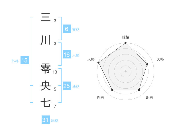 三川 零央七さんの総格は31画の5点!