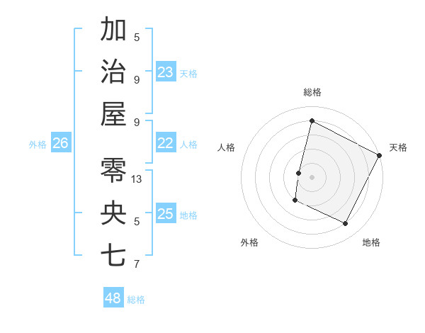 加治屋 零央七さんの天格は23画の5点