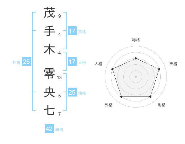 茂手木 零央七さんを姓名の画数から五運を鑑定