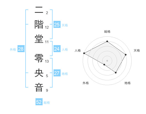 二階堂 零央音さんの総格は52画の4点!