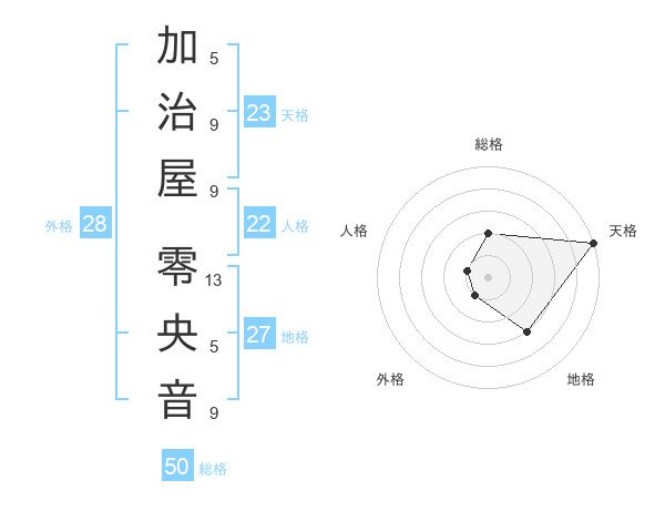 加治屋 零央音さんを姓名の画数から五運を鑑定