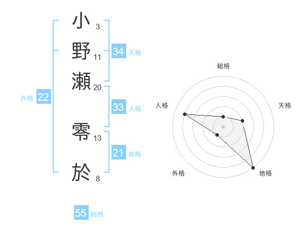 小野瀬 零於さんを姓名の画数から五運を鑑定