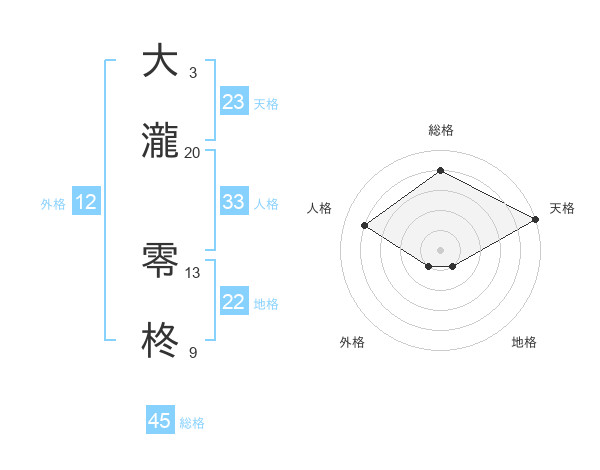 大瀧 零柊さんの総格は45画の4点!