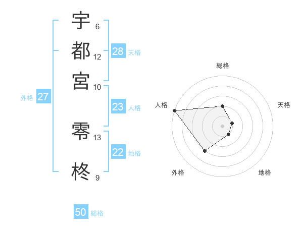 宇都宮 零柊さんを姓名の画数から五運を鑑定