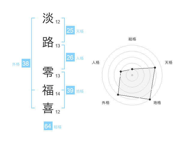 淡路 零福喜さんを姓名の画数から五運を鑑定