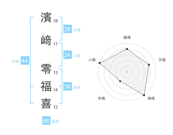 濱﨑 零福喜さんを姓名の画数から五運を鑑定