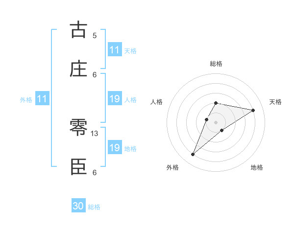 古庄 零臣さんの総格は30画の2点!
