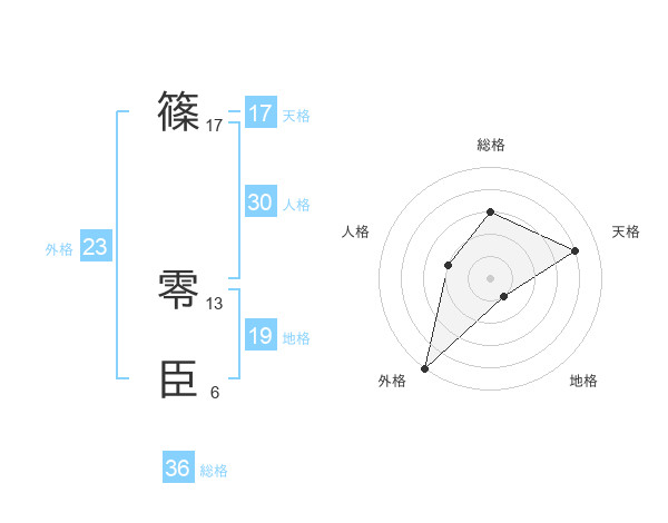 篠 零臣さんの外格は23画の5点!