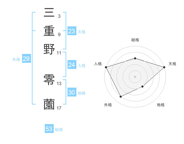 三重野 零薗さんの総格は53画の3点!