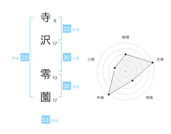 寺沢 零薗さんの外格は23画の5点!