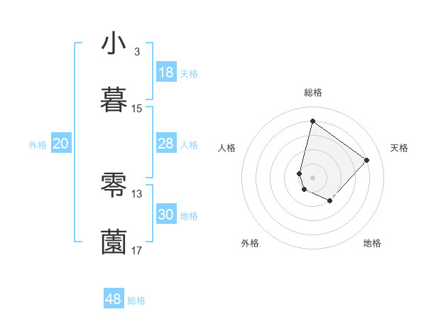 小暮 零薗さんの総格は48画の4点!
