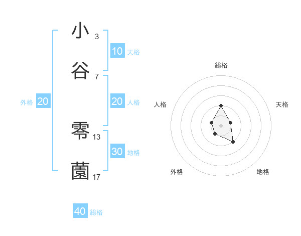 小谷 零薗さんの総格は40画の2点!