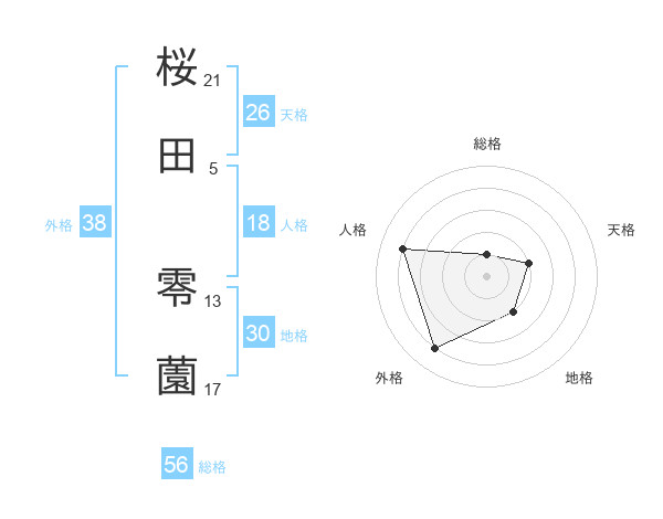桜田 零薗さんを姓名の画数から五運を鑑定