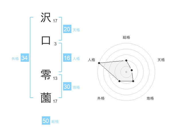 沢口 零薗さんの総格は50画の2点!