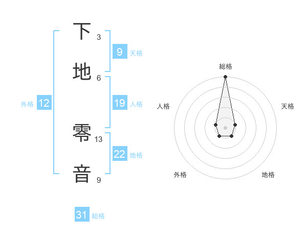 下地 零音さんの総格は31画の5点!