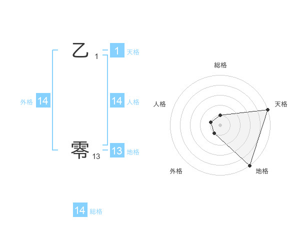 乙 零さんの総格は14画の1点!
