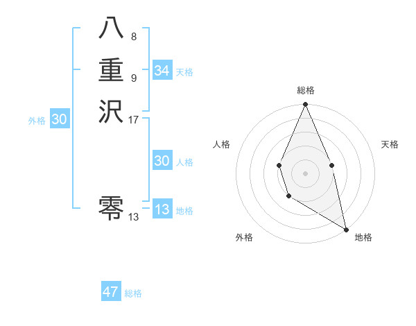 八重沢 零さんの総格は47画の5点!