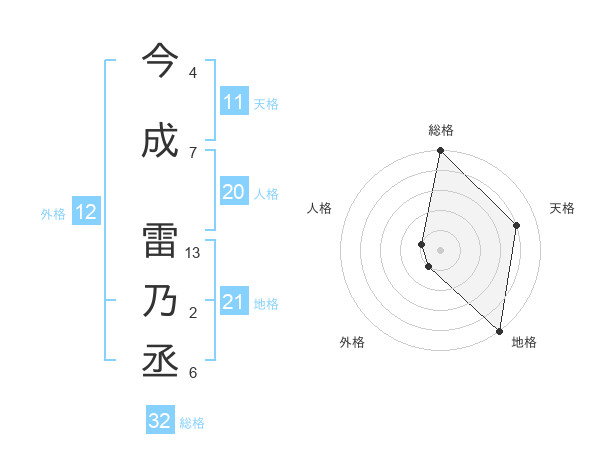 今成 雷乃丞さんの総格は32画の5点!
