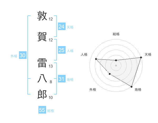 敦賀 雷八郎さんの地格は31画の5点!