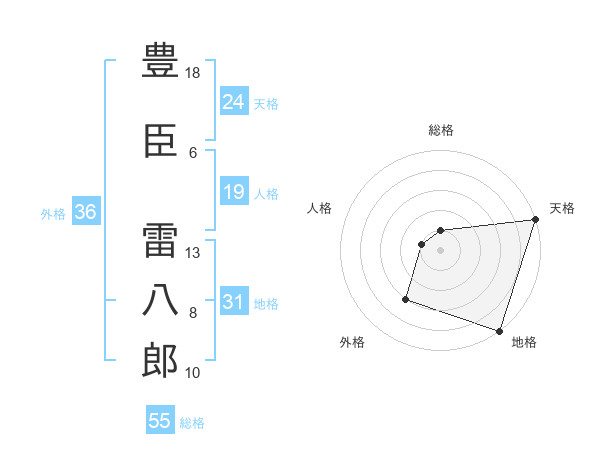 豊臣 雷八郎さんの天格は24画の5点!