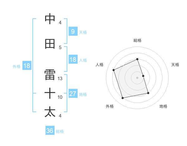 中田 雷十太さんを姓名の画数から五運を鑑定