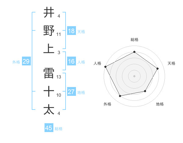 井野上 雷十太さんの総格は45画の4点