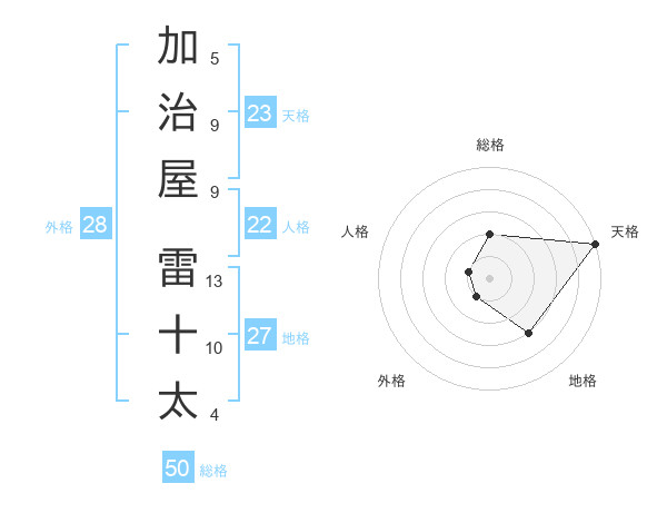 加治屋 雷十太さんの天格は23画の5点!