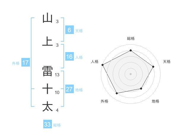 山上 雷十太さんを姓名の画数から五運を鑑定