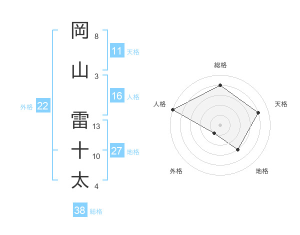 岡山 雷十太さんを姓名の画数から五運を鑑定