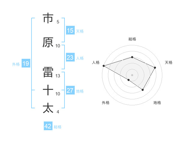 市原 雷十太さんを姓名の画数から五運を鑑定